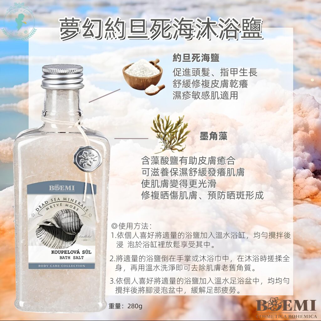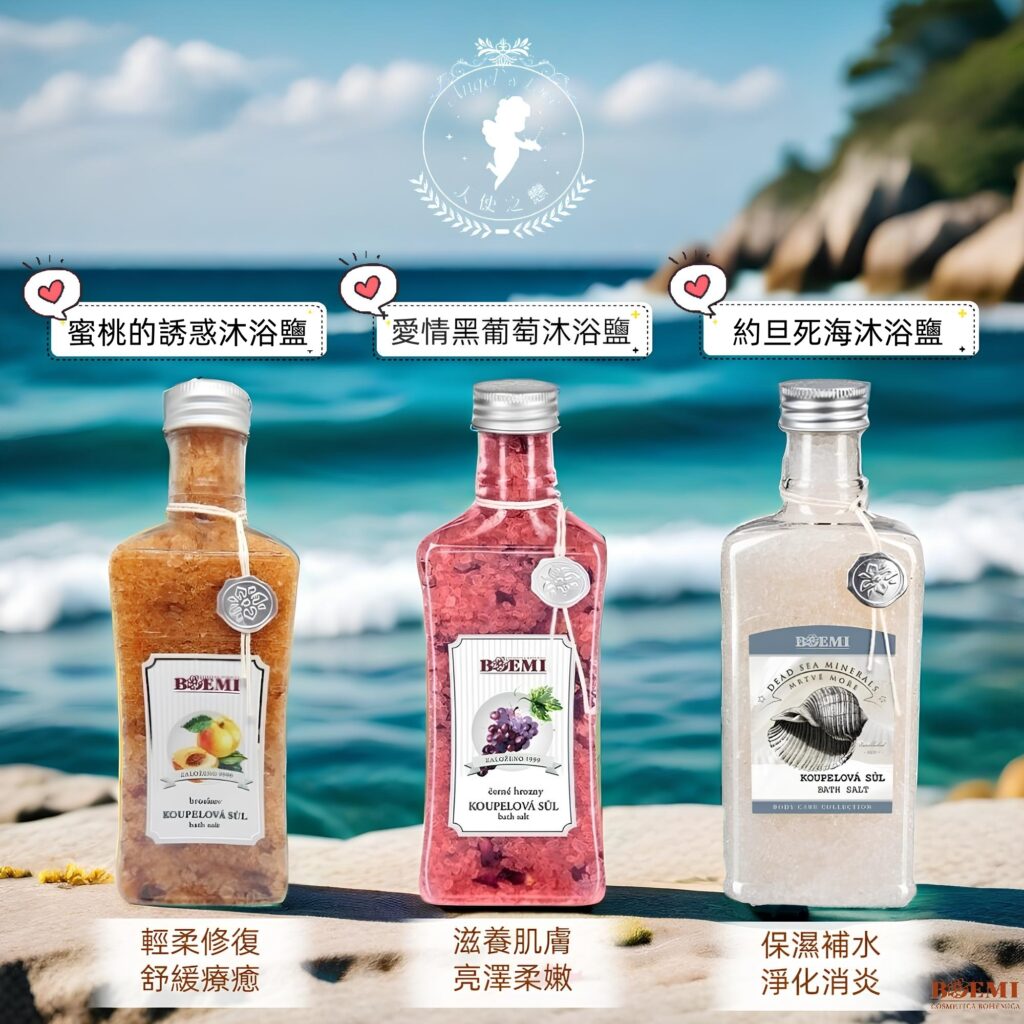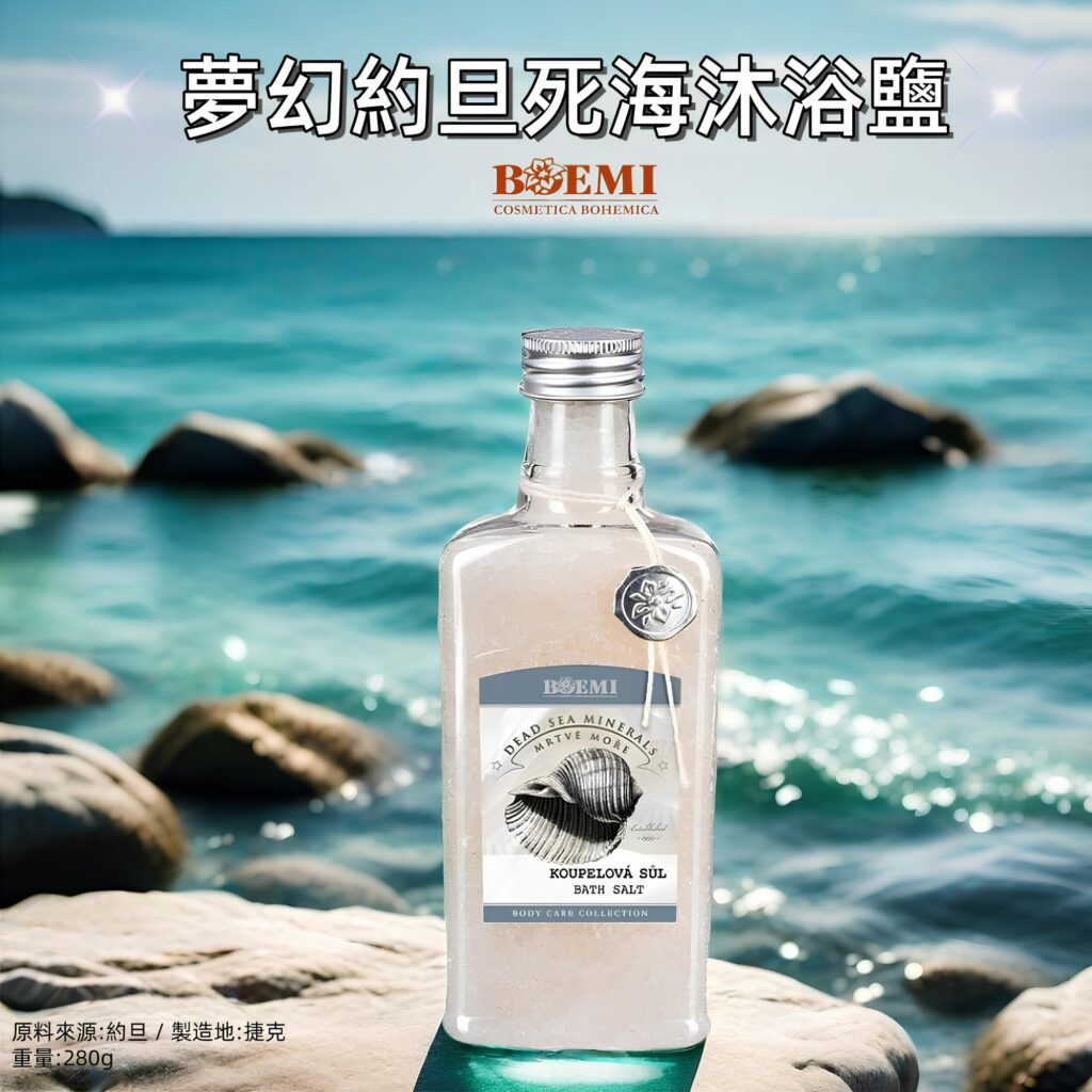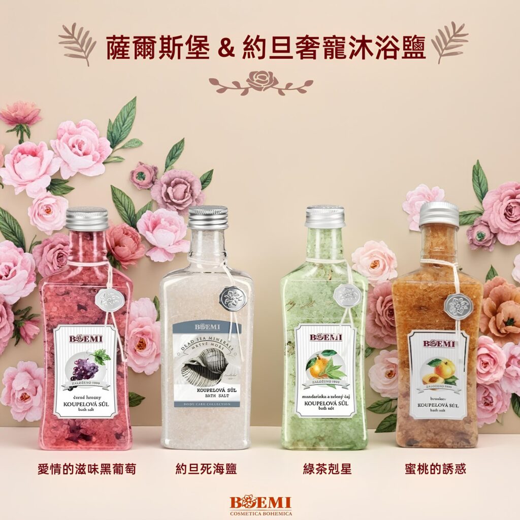 》浴鹽泡澡:取適量浴鹽放入浴缸,等浴鹽溶解後全身泡澡10 – 20分鐘。