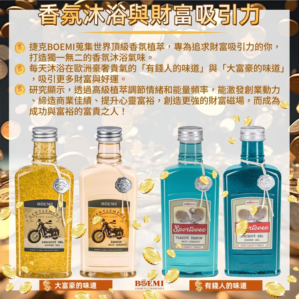 容量:275ml 產地:捷克 商品描述: •原萃燕麥仁、香茅、柑橘、椰子油、植物甘油 •揉入芳樟精油天然香氛療癒身心,煥發富貴光采 •融合世界頂級有錢人品味,無與倫比奢華體驗 使用方法: 將沐浴膠取適量倒在沐浴巾沾水搓揉起泡,再塗抹全身肌膚輕柔按摩,最後再以清水沖洗乾淨。捷克頂級沐浴膠採用天然植萃成份,不僅能有效清潔皮膚,還能同時提供深層保濕,讓肌膚保持柔軟和滋潤,溫和不刺激,適合各種膚質使用。