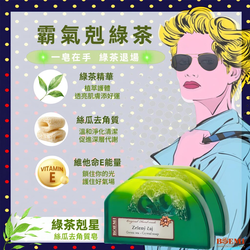 公克數:100g 產地:捷克 商品描述: •洗出自信光芒,洗出強大氣場 •洗出制霸綠茶的正氣能量 •洗出萬丈光芒的肌膚亮澤 •霸氣剋綠茶,煥發朝氣與好運 •布拉格山谷綠茶葉融合清新香氣 •茶香抗氧化劑帶來肌膚煥然一新 •優雅香氣紓壓療癒調節油脂分泌 使用方法: 以微濕的雙手、浴球、絲瓜絡或海綿,搓揉起泡,溫柔潔淨身體肌膚,再以清水洗淨,洗後柔潤舒適不乾澀,同時滋養肌膚,成份天然有機,適合全家大小使用。